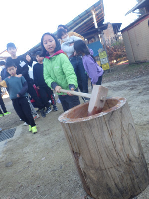 みんなでお餅つきをしました。「初めてやったから楽しかったー」という子もいて盛り上がりました。