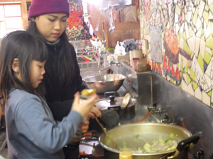 冬のキャンプでも食事は自分たちで作ります。夏とは違う旬の食材でどんな料理ができるかな?