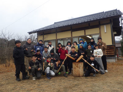 餅つきもやりました。年の数だけ餅をついて、最後は新年の抱負を述べます。美味しいお餅が完成!
