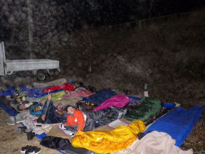 夜は野宿にもチャレンジしました!一晩過ごせる寝床をみんなで作って臨みます。星も沢山見えました。