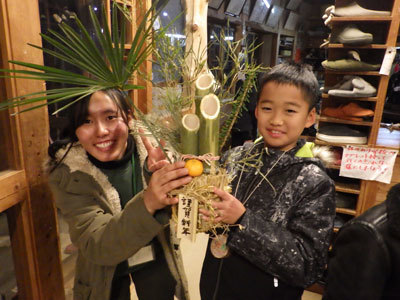 こちらは、竹とわらとみかん(笑)を使ってとっても素敵な門松が完成しました。細部までこだわり抜いた門松。かっこいい!