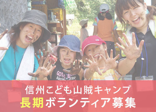 2024信州こども山賊キャンプ長期ボランティアスタッフ募集長期ボランティアは自己成長のチャンスです。休みの時間をどう使うかはあなた次第!授業や講義からでは決して得られない感動と学びの大きな一歩を踏み出してみませんか?
